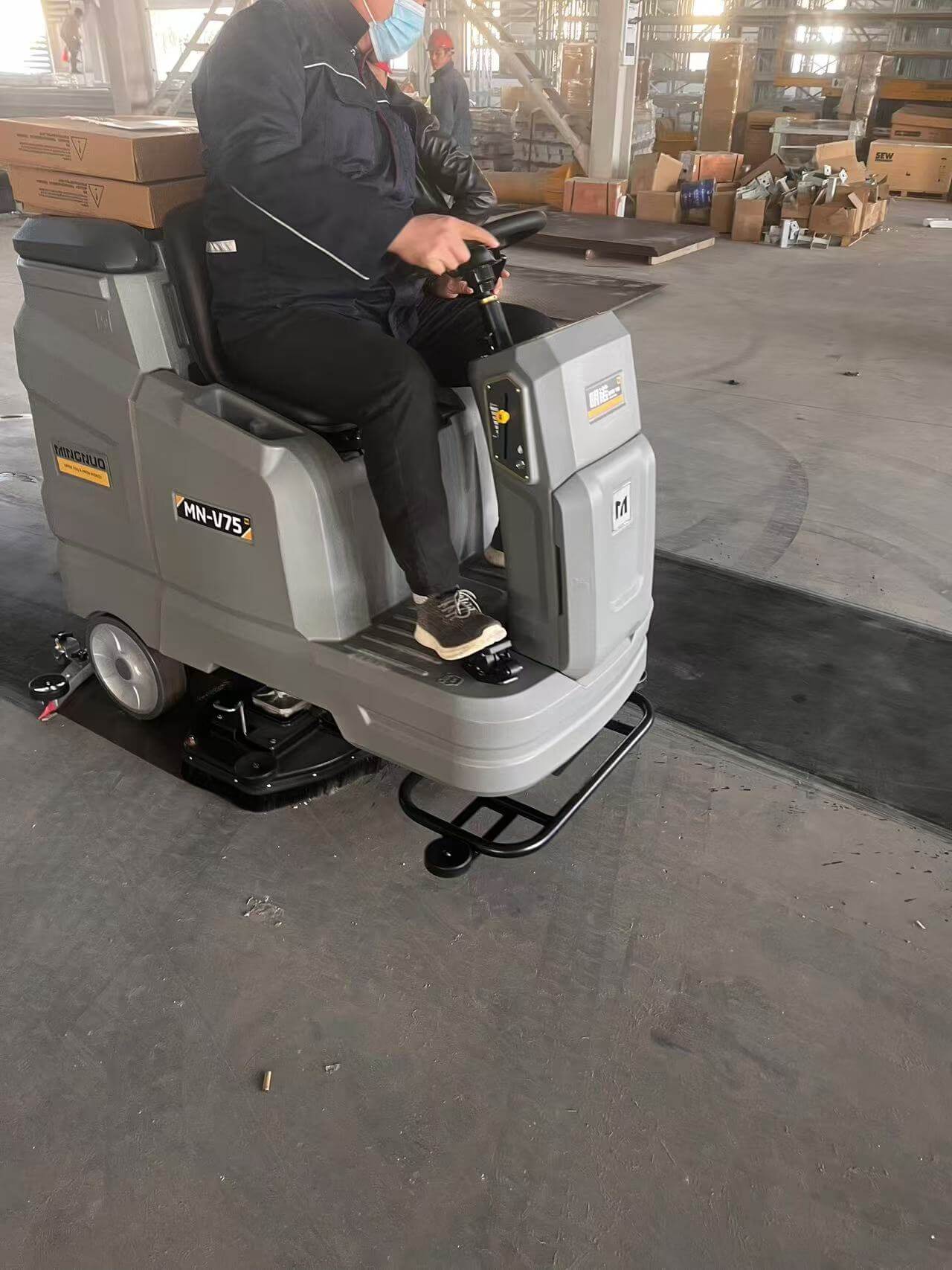近日,老坝港百威电气为优化厂区清洁工作,引入了明诺生产的 MN-V75 驾驶式洗地机。该设备的投入使用,大幅提升了清洁效率与质量。