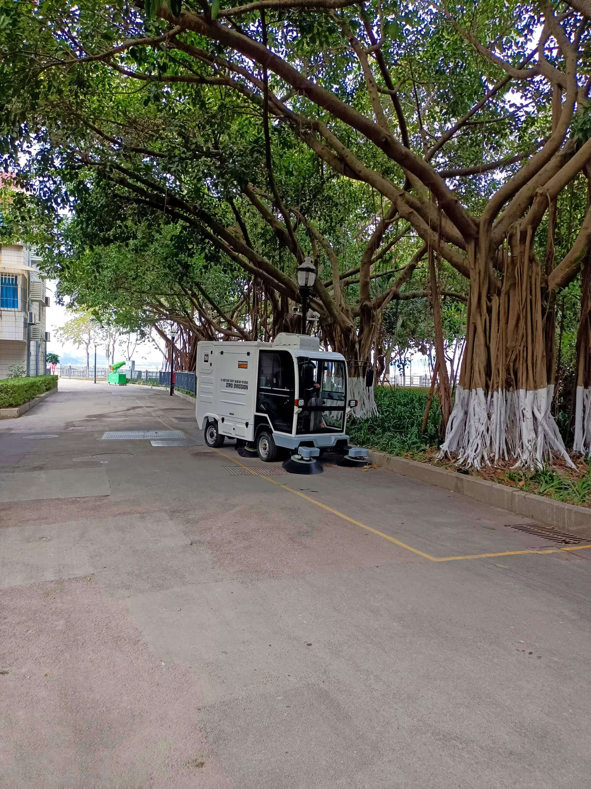 这台扫地机专为思明区路况设计:1.6 米窄车身,轻松穿梭镇邦街、大同路等老巷,避免大型设备 “卡壳”;作业噪音低于日常说话声,早高峰在校园周边工作也不扰人;还能边扫边喷水降尘,干燥天也无扬尘,行人无需捂口鼻。并且它 “续航力” 也强,120L 垃圾箱加 80L 水箱,满负荷可连续工作 4 小时,从清晨菜场到傍晚商街,能高效清理路面杂物。