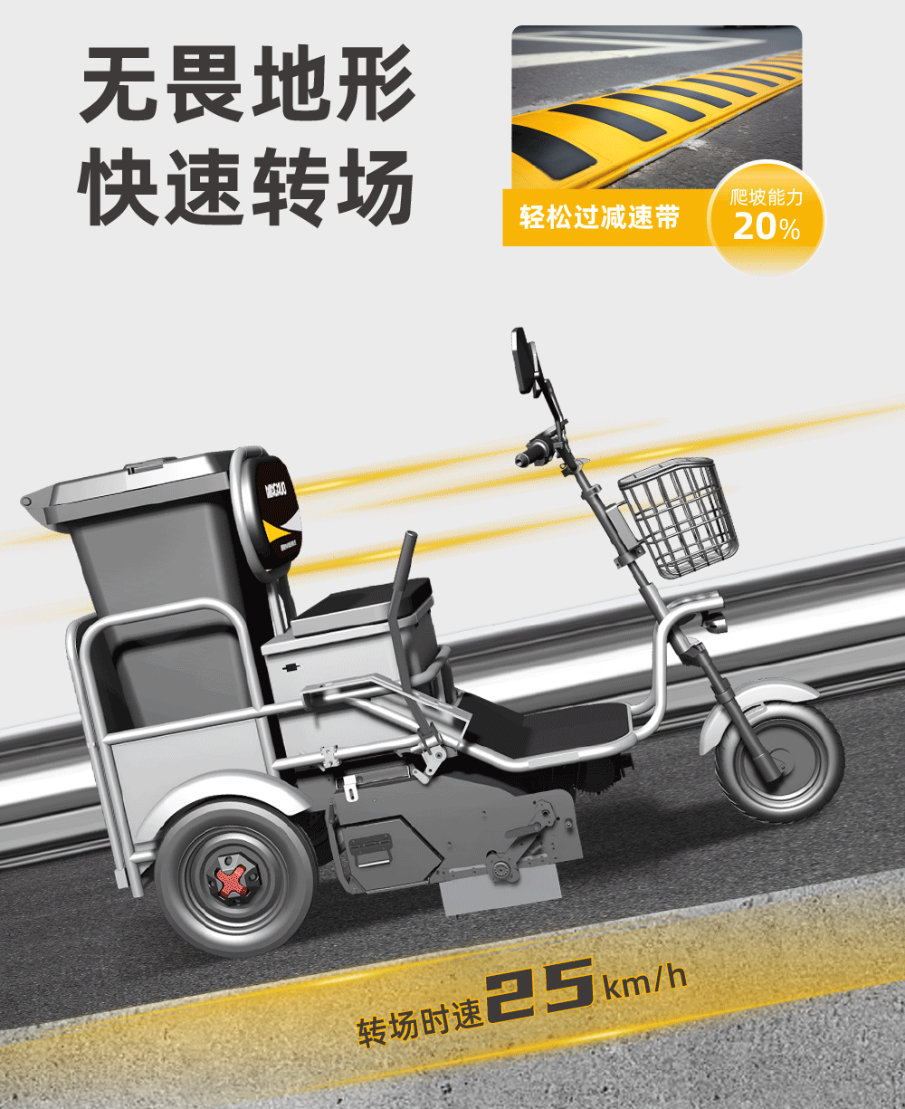 大型扫地车无法进入狭窄区域,留下卫生死角?