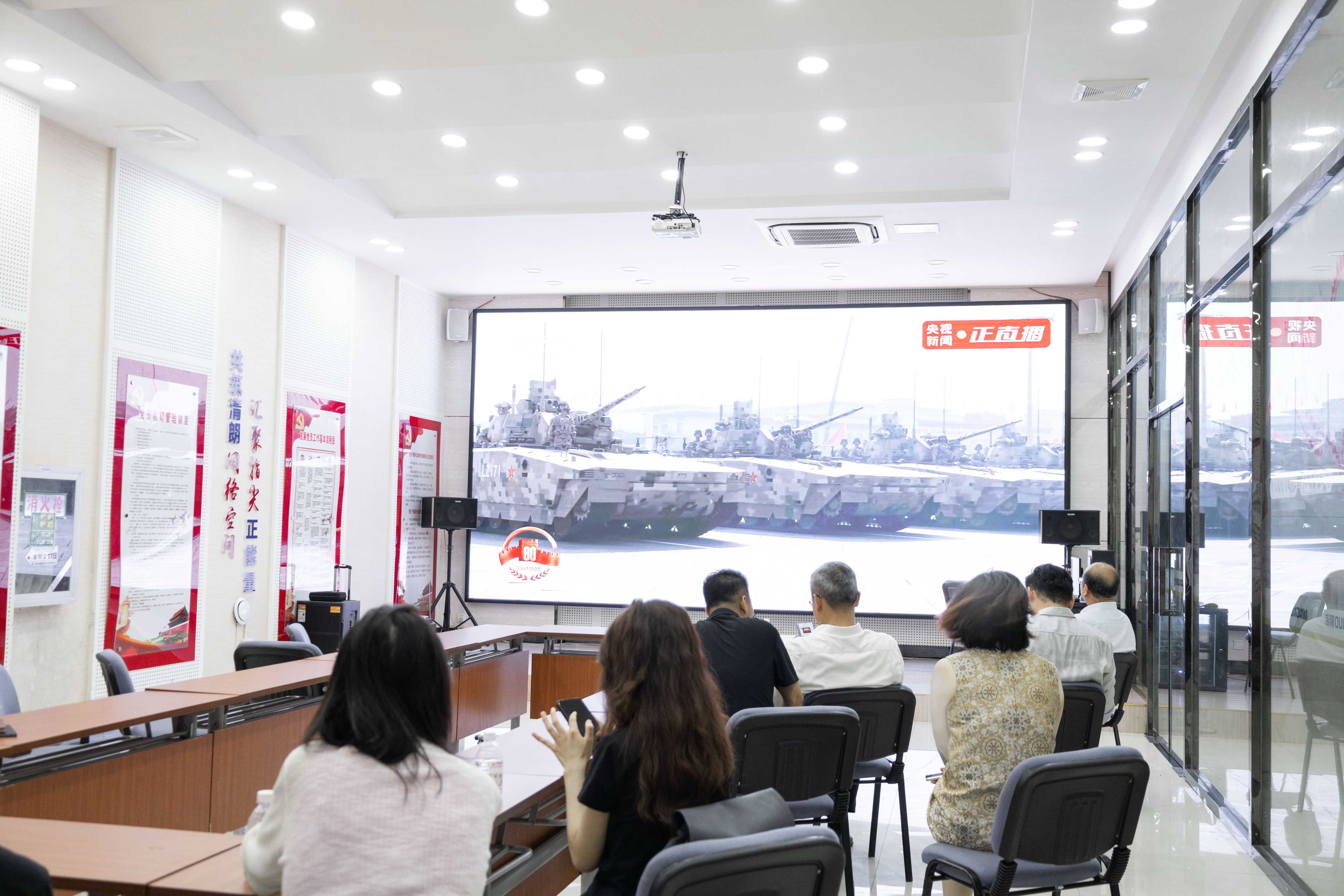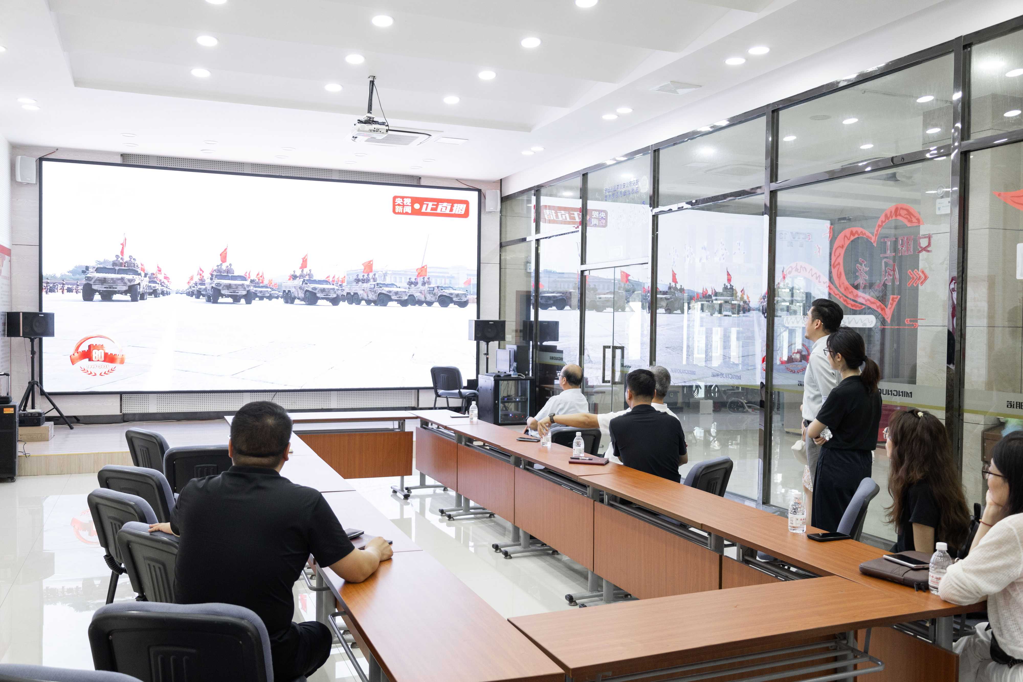 9月3日上午,半岛集团官网研发大楼培训教室内,国旗飘扬、庄严肃穆,20多名党员齐聚一堂集体观看纪念中国人民抗日战争暨世界反法西斯战争胜利80周年阅兵直播盛况。